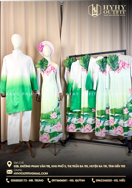 ÁO DÀI SEN LÁ SEN TRÊN VAI NAM NỮ