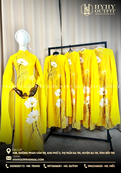 ÁO DÀI VÀNG TAY BÈO HOA BỒ CÔNG ANH